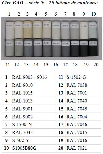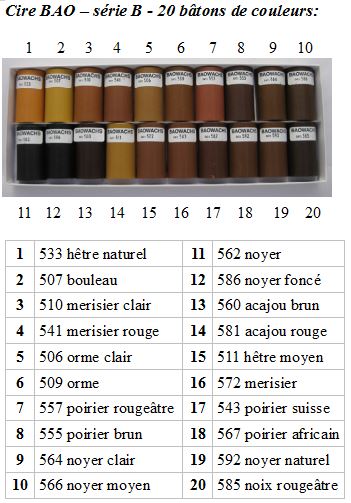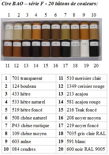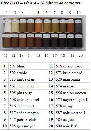 - Bâtons de cire molle BAO prêt à l'emploi pour réparations de bois et stratifiés.